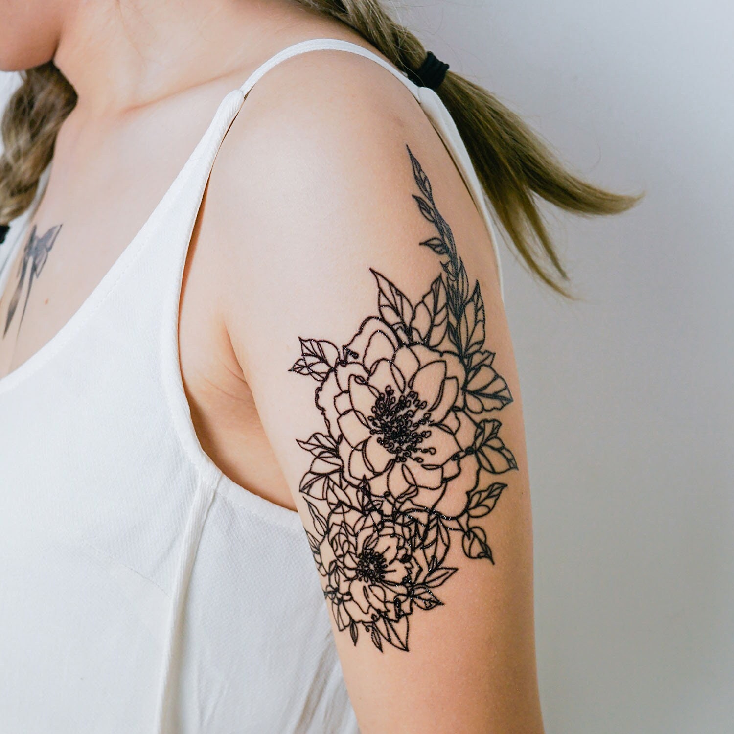 Symmetrical Flower Tattoos Ling Flower Tattoos Minimal Flower Etsy